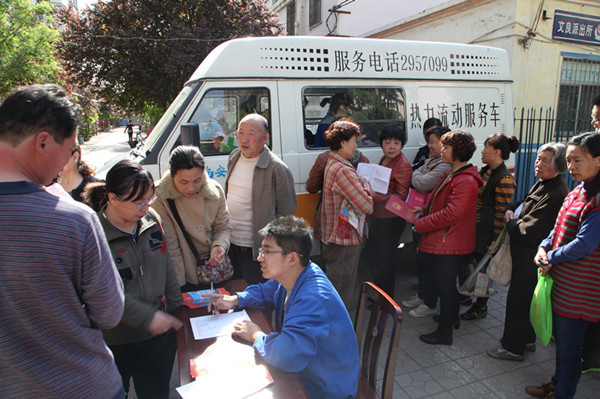 公司服務(wù)人員在該小區(qū)院內(nèi),一邊在流動服務(wù)車內(nèi)為用戶辦理居民采暖證,一邊在咨詢服務(wù)臺為用戶提供專業(yè)的供熱咨詢服務(wù),一邊在供熱宣傳展板前講解供熱政策,一邊向用戶發(fā)放供熱常識宣傳頁。整個服務(wù)現(xiàn)場氣氛熱烈、井然有序,深受小區(qū)居民和用戶的歡迎和贊揚(yáng)。
