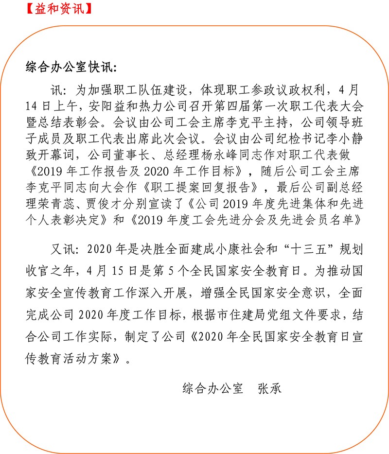 安陽益和熱力公司召開第四屆第一次職工代表大會暨2019年度總結表彰大會